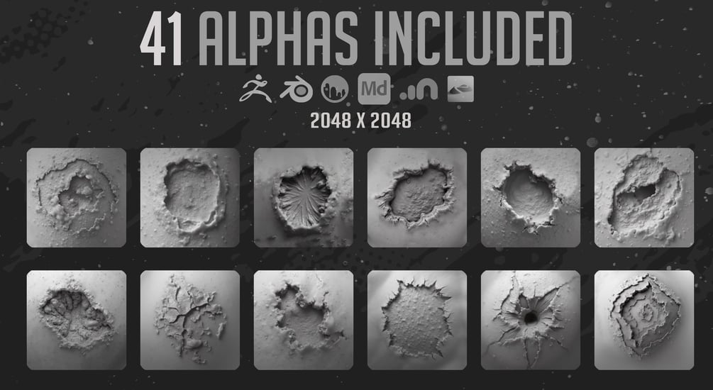 Alphas for use in any Sculpting, and Modeling app.