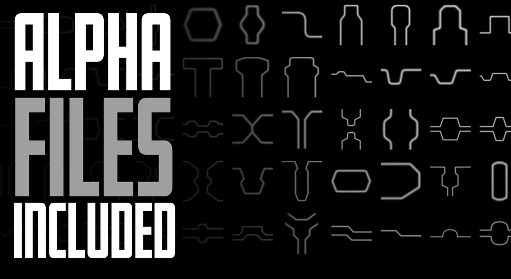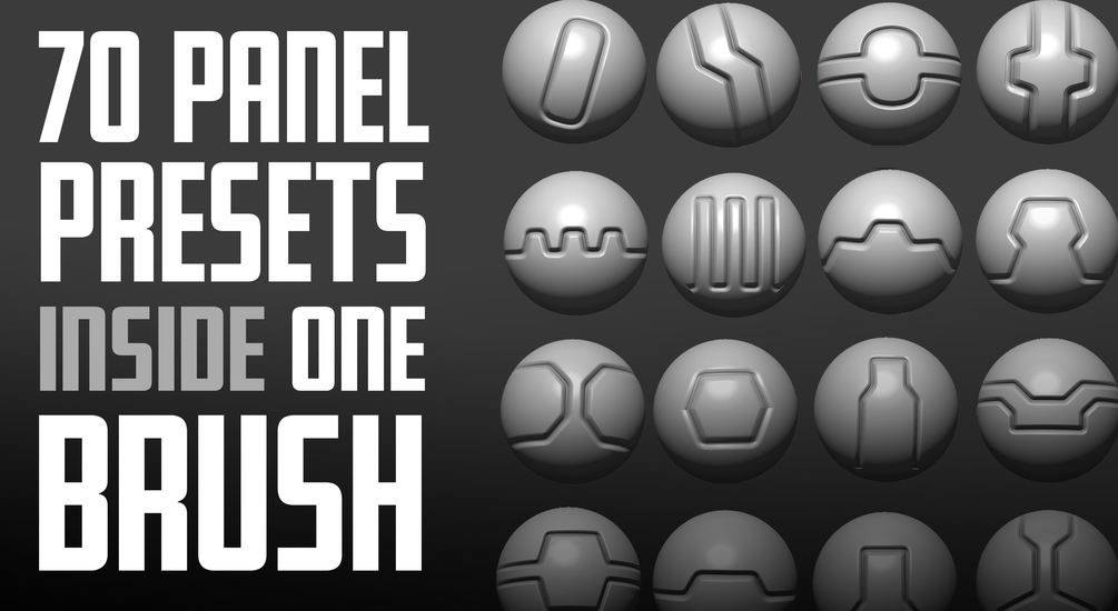 use this set of panel line preset Brushes, Alphas, and curves to refine, and design your sculpt.
